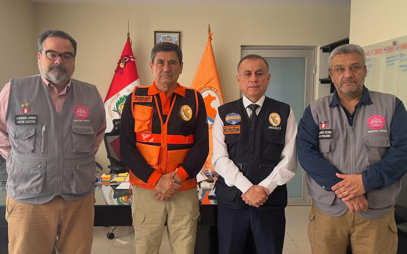 Asimismo, hicimos una presentación al nuevo Jefe del INDECI, General en retiro Luis Enrique Arroyo Sánchez, quien asumió el cargo hace muy pocas semanas. Esta reunión ha sido muy importante para la continuidad de nuestras operaciones de cara al inicio de la temporada de lluvias y a cualquier otro desastre que pudiera ocurrir en los próximos meses.